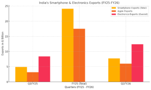 Total electronics exports in Q1FY26: $12.4 billion (up 48% YoY)