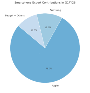 Indiaās total smartphone exports in Q1FY26 rose 58% YoY, from $4.9 billion to $7.72 billion.