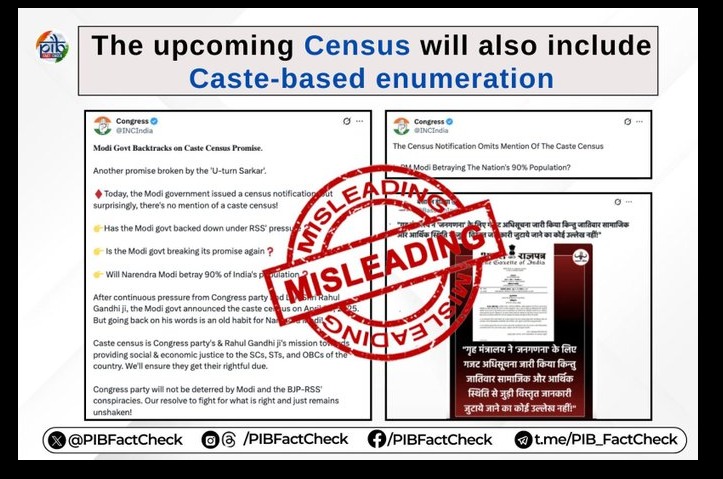 In response to misleading social media posts claiming that caste enumeration is being excluded, the PIB Fact Check team confirmed that such claims are false.