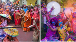 🌸 Mathura & Vrindavan: The birthplace of Lord Krishna sees a week-long celebration with Lathmar Holi, where women playfully beat men with sticks.