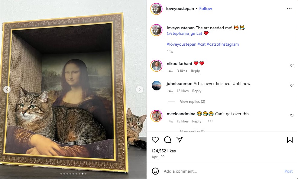 Living in Kharkiv, Ukraine, Stepan rose to fame for his stoic poses next to a glass of wine. His platform became a force for good during the war, raising humanitarian funds for Ukrainians in need. With 1.6 million followers, he proves cat fame can do more than entertain.