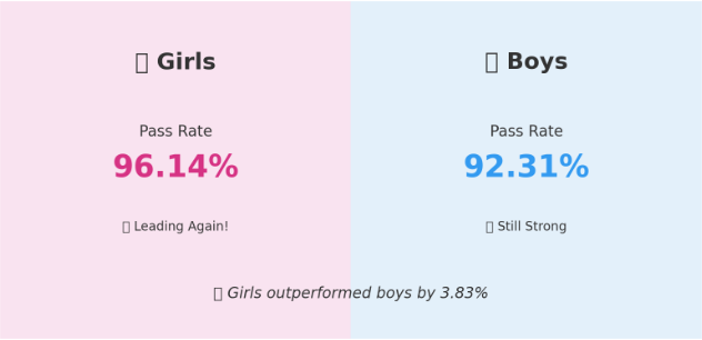 Girls continued their strong performance streak, surpassing boys by a margin of 3.83%: