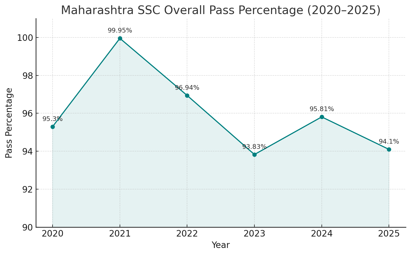The overall pass percentage for 2025 stood at 94.10%, marking a slight decline compared to previous years: