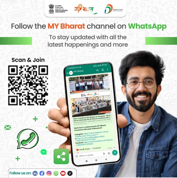 The newly launched WhatsApp chatbot, now live on mybharat.gov.in and accessible directly via +91-72890 01515, enables all registered MY Bharat users to interact with the platform by simply sending ‘Hi’ to the number. Login is secured via OTP, making the process simple and secure.