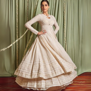 Named after Anarkali, the fabled courtesan whose tragic love story with Prince Salim (Emperor Jahangir) remains legendary, this flowing, floor-length silhouette exudes grace, romance, and royalty. From the Mughal courts to Bollywood bridal fashion, the anarkali suit remains the most iconic desi silhouette of all time.