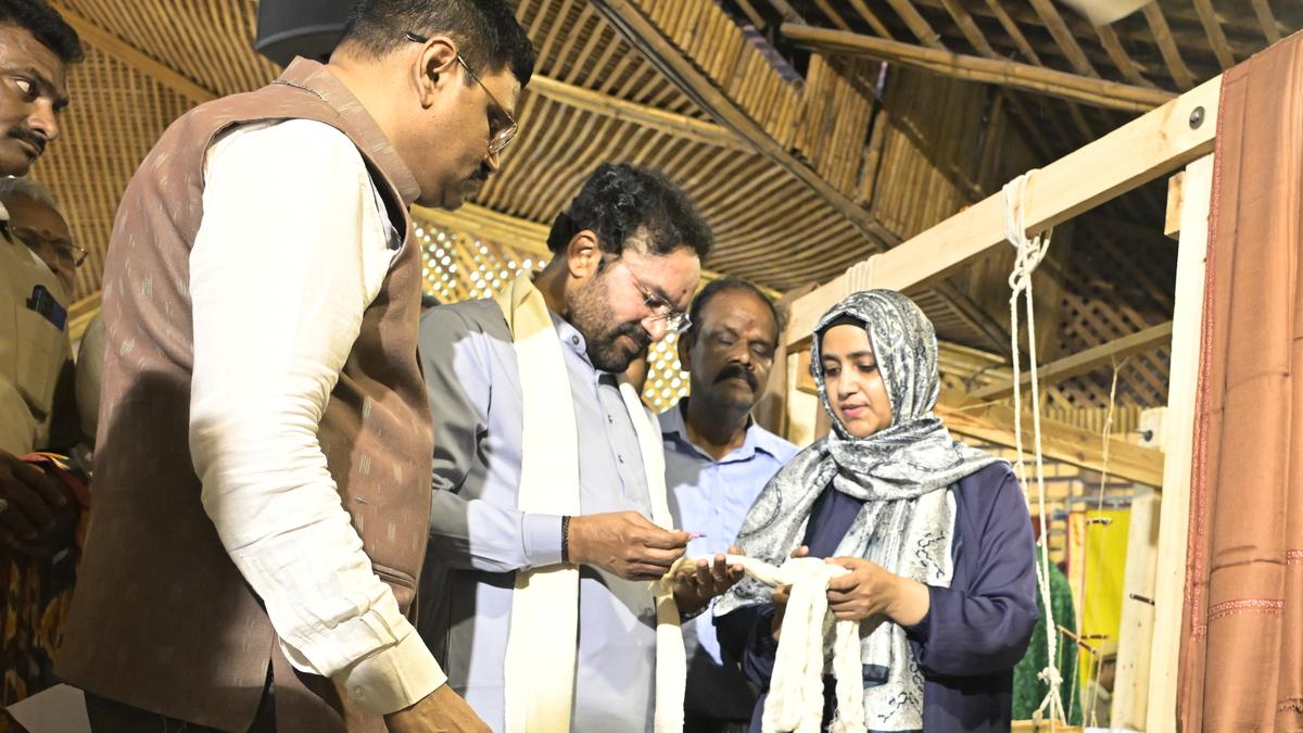 Union Minister of Coal and Mines G. Kishan Reddy at the inauguration of the week-long celebrations to mark National Handloom Day at Shilparamam in Hyderabad on Sunday. | Photo Credit: SIDDHANT THAKUR