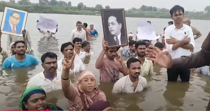Frustrated with government inaction and delayed payments, farmers, under the leadership of MLA Chandrakant Patil, entered the Purna River in a symbolic “Jalsamadhi” protest to draw attention to their plight.