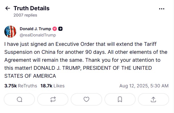 In an unexpected yet pragmatic turn, President Donald Trump has extended the U.S.–China trade truce for another 90 days, postponing a potential escalation between the world’s two largest economies.
